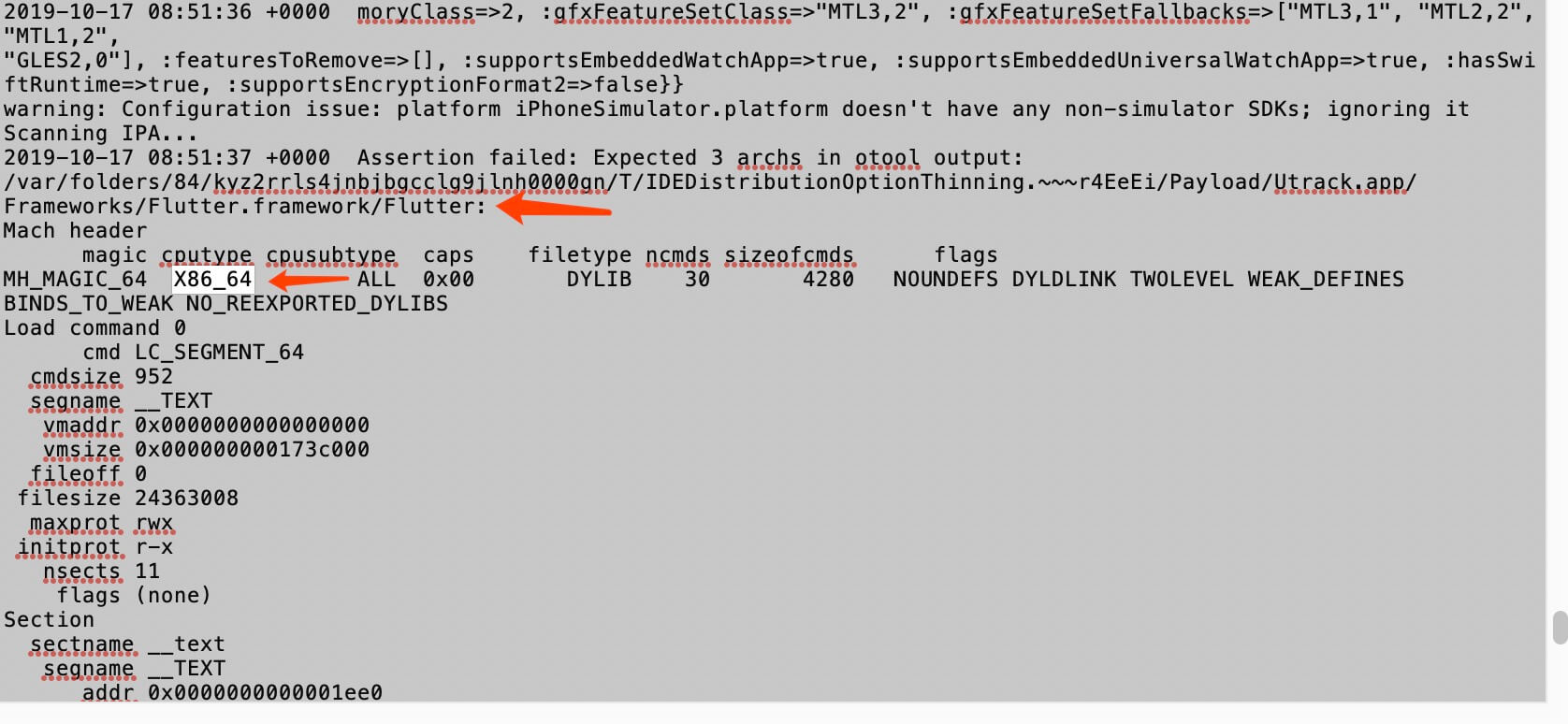 执行: lipo -remove x86_64 Flutter -o Flutter